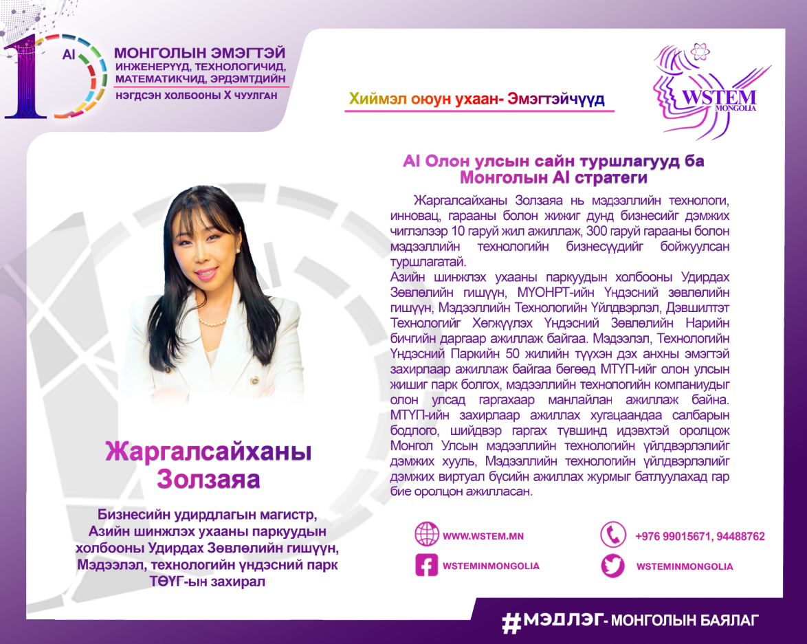 Чингис хаан үндэсний музейд 2025 оны 12-р сарын 6-ны 8:30-14:00 хооронд Хиймэл оюун ухаан- Эмэгтэйчүүд" сэдвийн дор танхим болон цахим хосолсон хэлбэрээр зохион байгуулагдах МЭИТМЭ-ийн нэгдсэн холбооны бүх гишүүдийн 10-р чуулга уулзалтын ИЛТГЭГЧИД